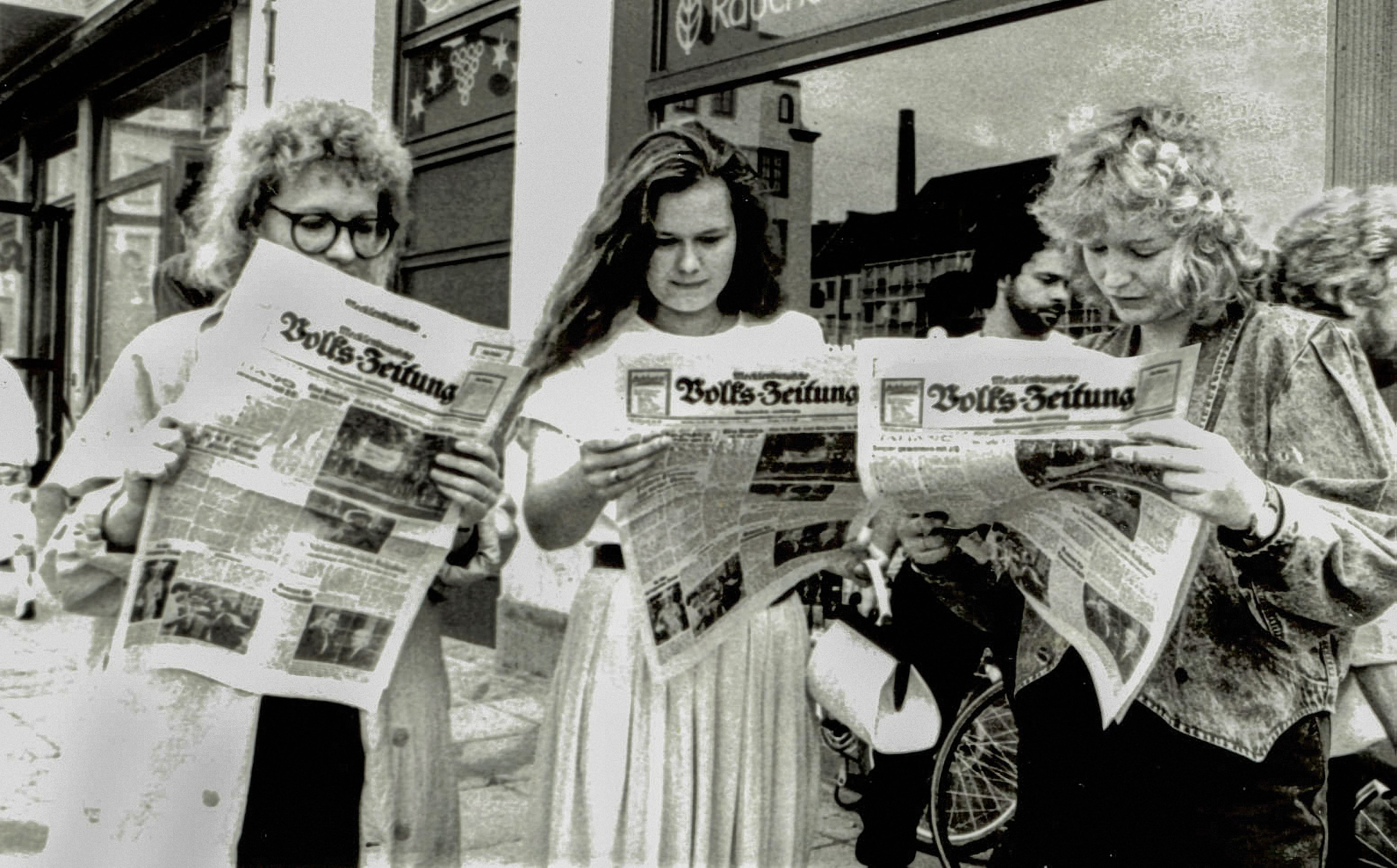 Kurzfazit: Ein freier und befreiender Journalismus - unwiederholbar in einer ebenso unwiederholbaren Phase deutscher Geschichte; aber was half das schon: Wir kamen nicht aus den Kinderschuhen. Arbeit ohne Ende, denn wir produzierten die dürre und dünne MVZ mit ihren meist nur sechs oder auch mal acht Seiten per nur halbwegs funktionierendem Telefon, mit Schreibmaschinen-Manuskripten, die von der Redaktion ins Druckhaus mit dem Boten zu schicken waren, wie auch die wenigen Fotos, die dann im stark gerasterten Schwarz-Weißdruck kaum noch zu erkennen waren. Neben der Entschuldigung, dass wir die schlechtesten Bedingungen für den Druck unserer Zeitung hatten, hielt der Inhalt dem selbst gesteckten Anspruch nicht stand, konnte es nicht. Hinzu kam das Problem mit dem Vertrieb, beinahe jeden Tag gab es Ärger mit dem Postzeitungsvertrieb, Abonnenten beklagten, die MVZ käme gar nicht oder viel zu spät. Abbestellung auf Abbestellung folgte. Zudem war es genau die Zeit, da die bunte bundesdeutsche Zeitungspracht über den Osten hagelte; kaum eine Chance, mit den Idealen der verlängerten friedlichen Revolution beim Publikum zu landen.