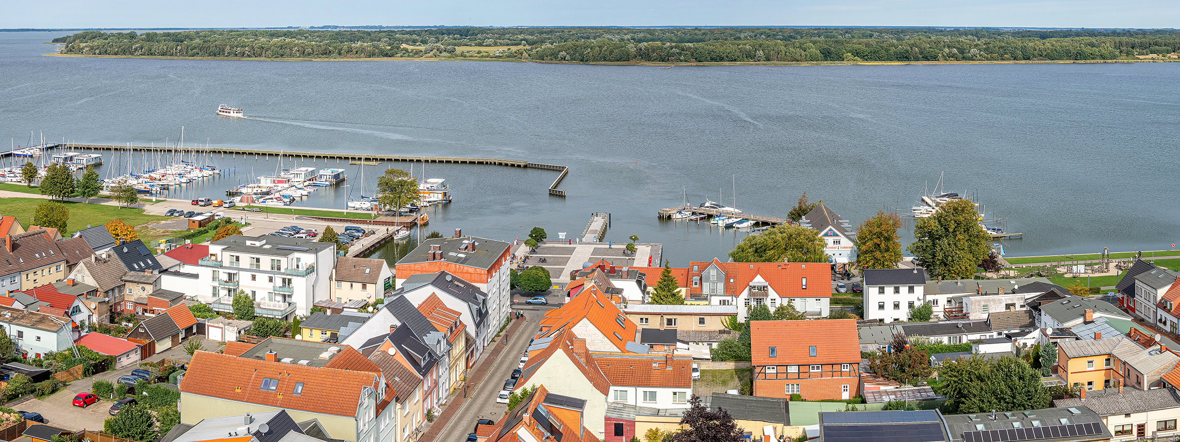(4) Ribnitz-Damgarten - Kleinstadt zwischen Ostsee und Bodden. Fotografiert vom Damgartener Ufer aus in Richtung Stadtzentrum Ribnitz.