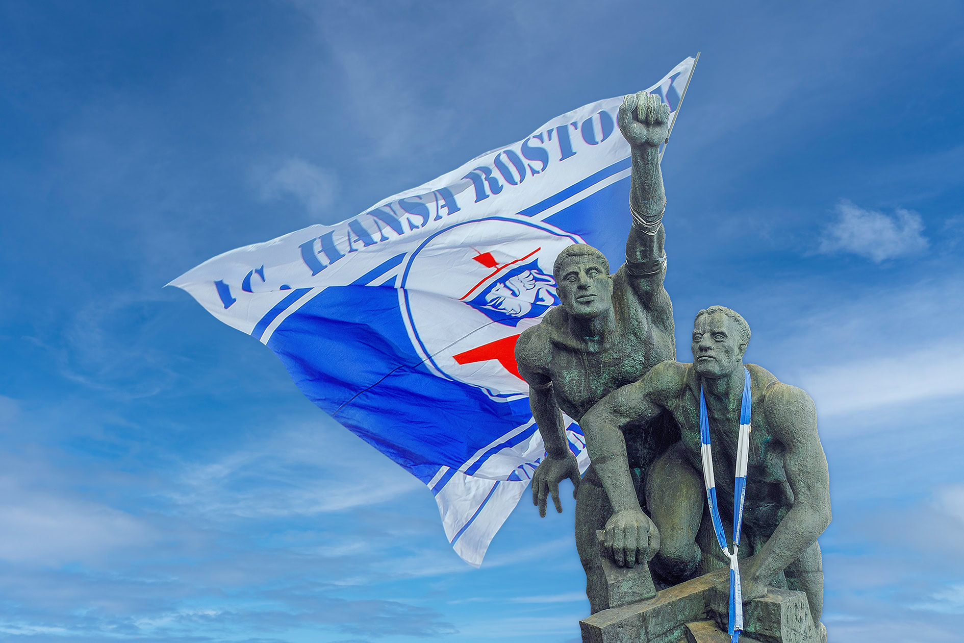 Dieses Bild zeigt das Matrosendenkmal am 5. Mai im Stadthafen. Eine kräftige Brise holte an diesem Tag die Hansafahne runter, dank Photoshop wieder montiert.