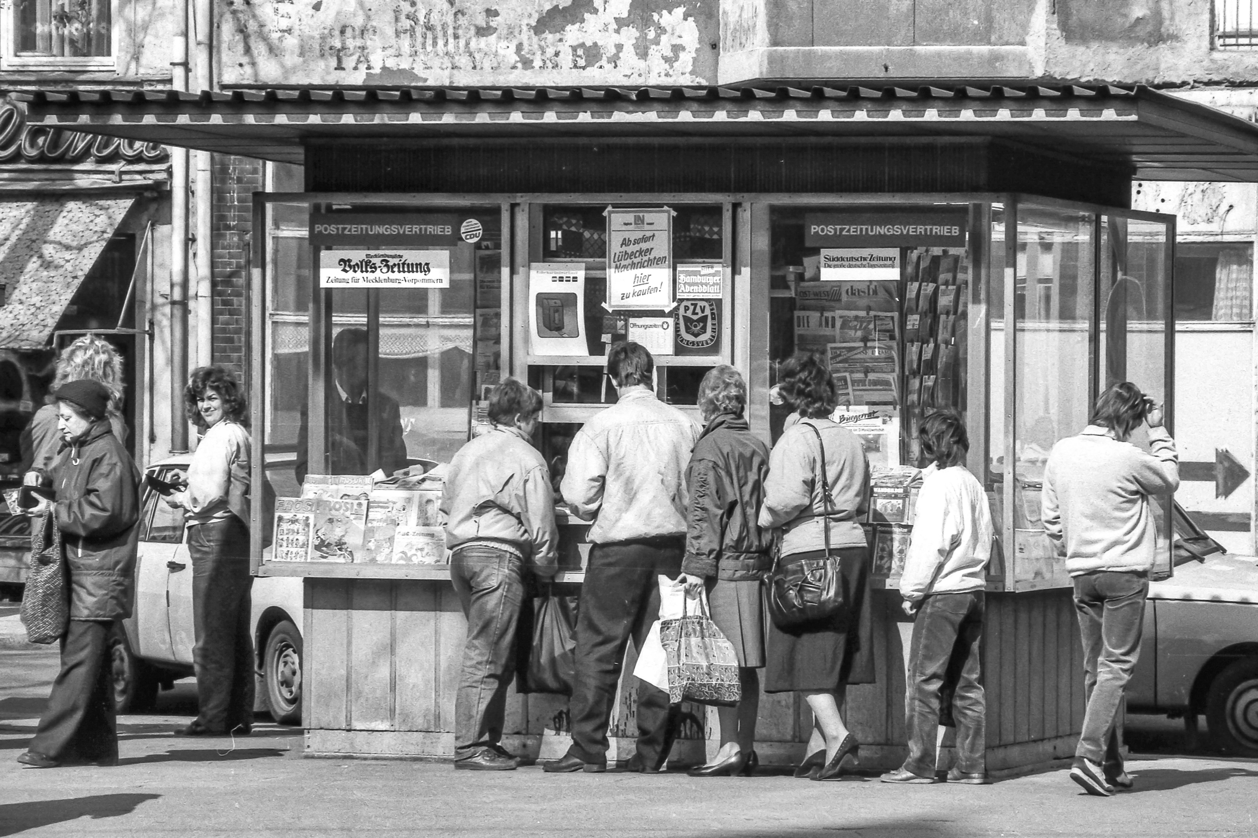 Kurzfazit: Ein freier und befreiender Journalismus - unwiederholbar in einer ebenso unwiederholbaren Phase deutscher Geschichte; aber was half das schon: Wir kamen nicht aus den Kinderschuhen. Arbeit ohne Ende, denn wir produzierten die dürre und dünne MVZ mit ihren meist nur sechs oder auch mal acht Seiten per nur halbwegs funktionierendem Telefon, mit Schreibmaschinen-Manuskripten, die von der Redaktion ins Druckhaus mit dem Boten zu schicken waren, wie auch die wenigen Fotos, die dann im stark gerasterten Schwarz-Weißdruck kaum noch zu erkennen waren. Neben der Entschuldigung, dass wir die schlechtesten Bedingungen für den Druck unserer Zeitung hatten, hielt der Inhalt dem selbst gesteckten Anspruch nicht stand, konnte es nicht. Hinzu kam das Problem mit dem Vertrieb, beinahe jeden Tag gab es Ärger mit dem Postzeitungsvertrieb, Abonnenten beklagten, die MVZ käme gar nicht oder viel zu spät. Abbestellung auf Abbestellung folgte. Zudem war es genau die Zeit, da die bunte bundesdeutsche Zeitungspracht über den Osten hagelte; kaum eine Chance, mit den Idealen der verlängerten friedlichen Revolution beim Publikum zu landen.