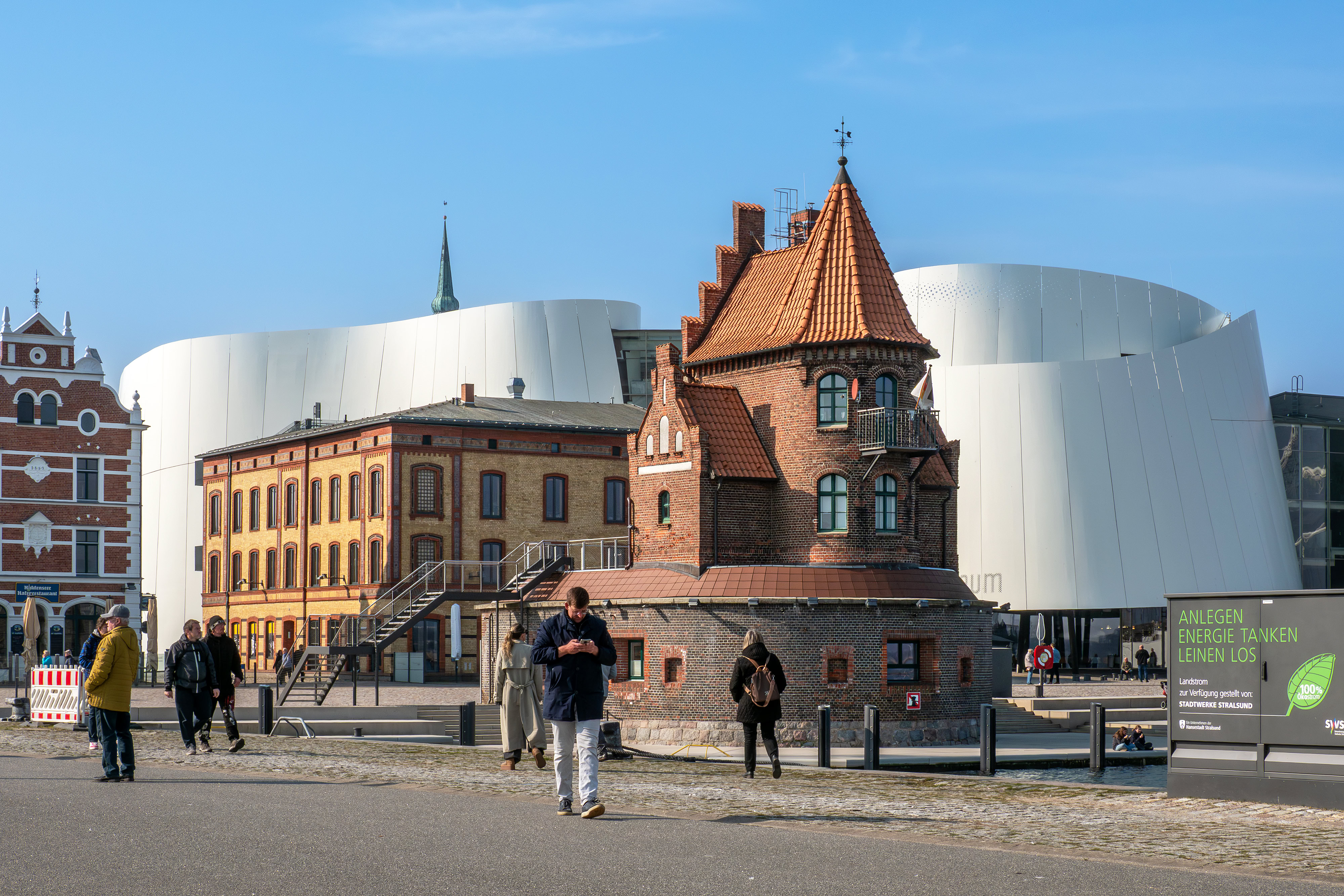 Angesichts der zahlreichen Attraktionen im Stralsunder Hafenviertel lohnt es sich, hier einen ganzen Tag aufzuhalten. Zu den markanten Stätten zählen z.B.: Lotsenhaus, Ozeaneum, Kirchen, Kunstgalerien, Museen und Gasthäuser.