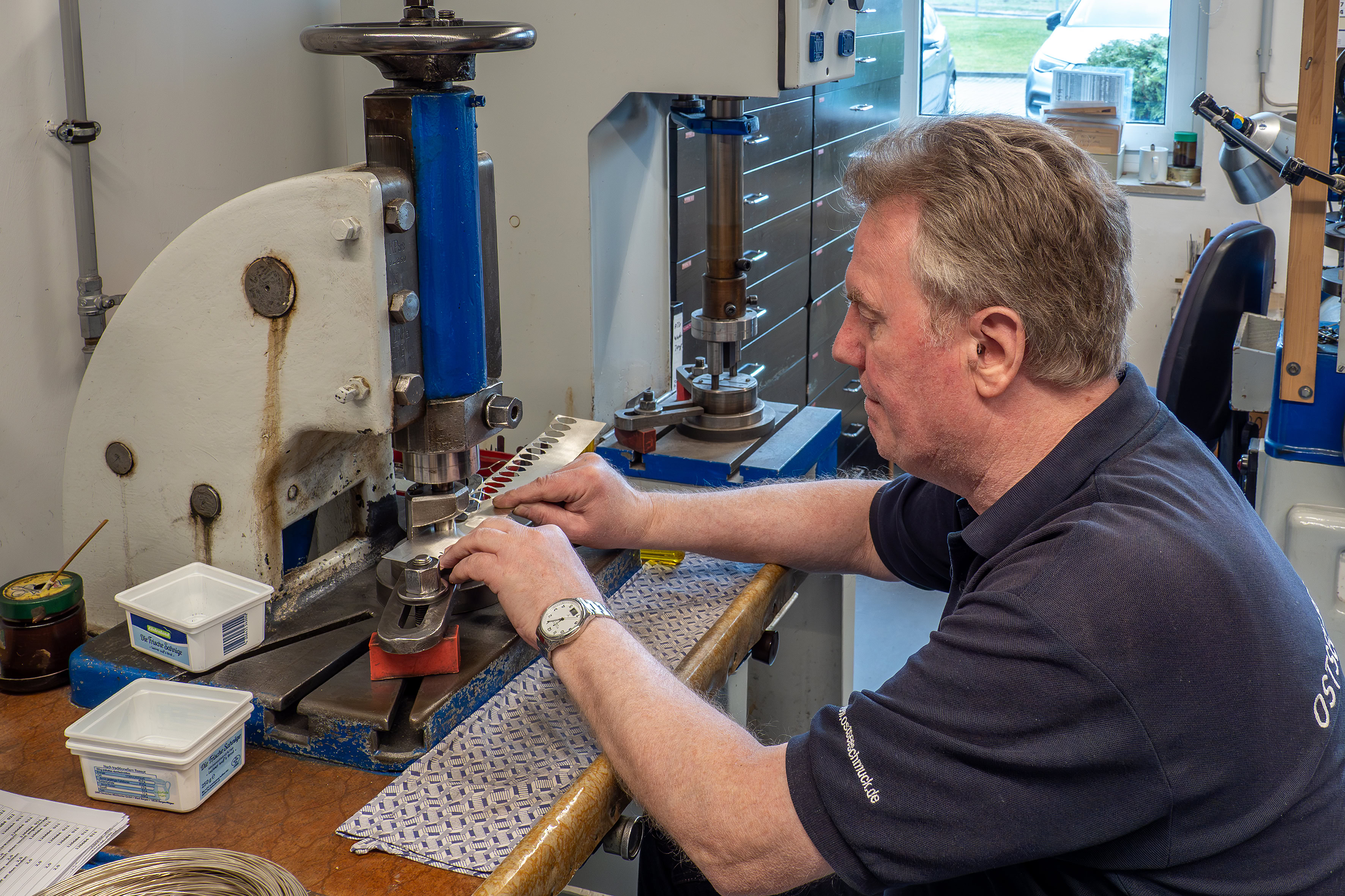 Feinschmied Jörg Schwerin in der Schauwerkstatt.